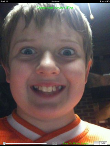 Once the iPad screen is displaying what your iPhone Camera sees, they are connected. There is a slider at the bottom of the screen if you want to zoom and a toggle switch that will let you choose whether or not to save the picture to the iPhone library. When you are ready to take a picture, hit the camera icon on the iPad.