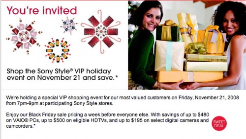 I just got an invite to Sony's VIP holiday event, which is taking place on November 21 from 7pm-9pm. The company is holding this event so select customers can get Black Friday pricing a week before black Friday to get the holiday ball rolling early.
